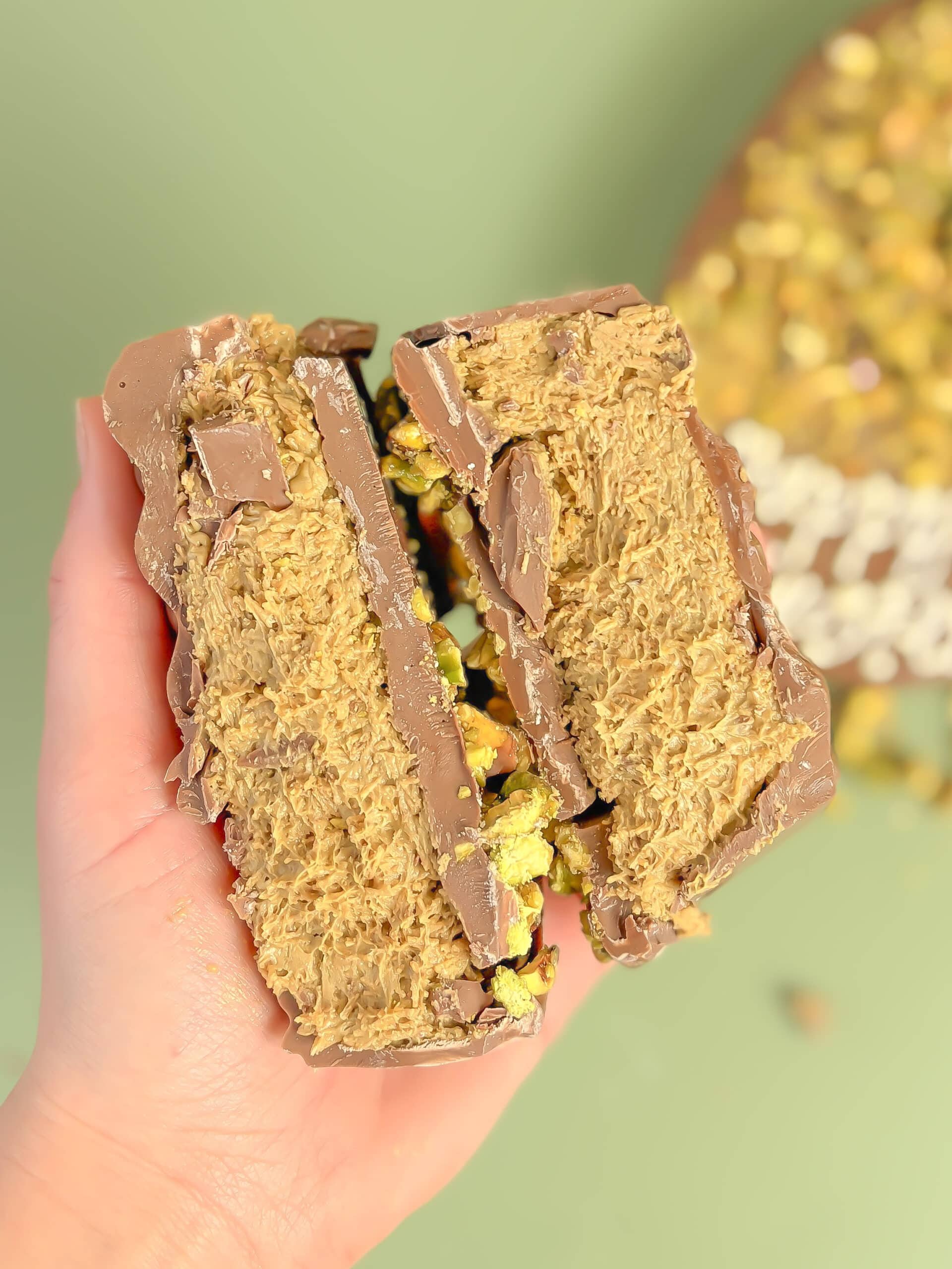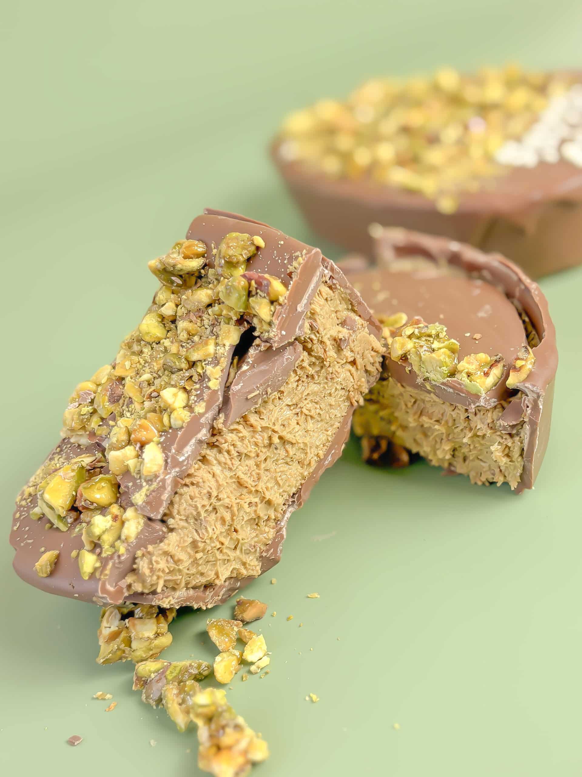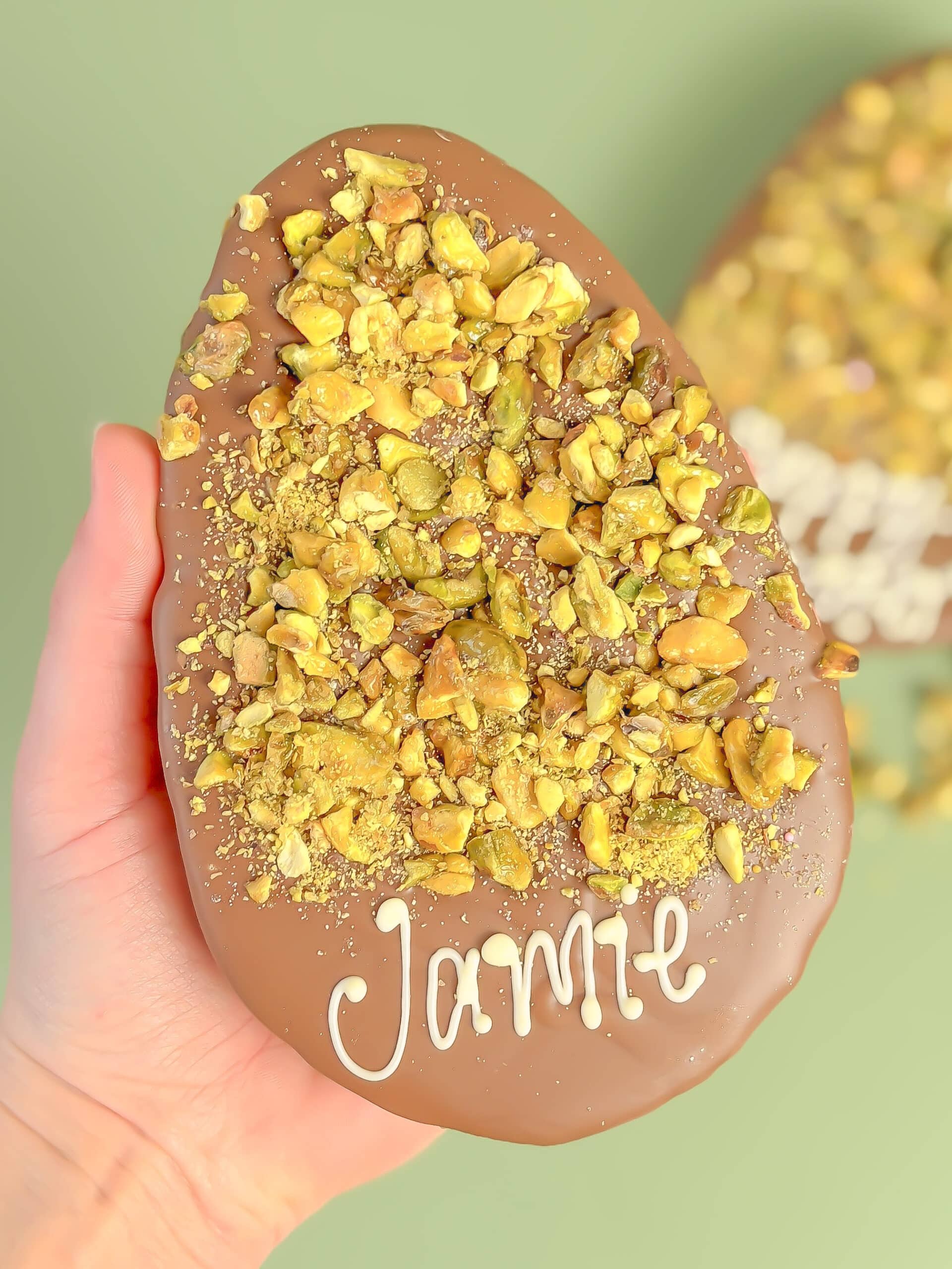 Crack into pure indulgence with our Dubai Dream Easter Egg – a luxurious Belgian milk chocolate egg stuffed to the brim with silky pistachio cream and crunchy kunafa, then topped with caramelised, roasted pistachios for the ultimate Middle Eastern–inspired treat.