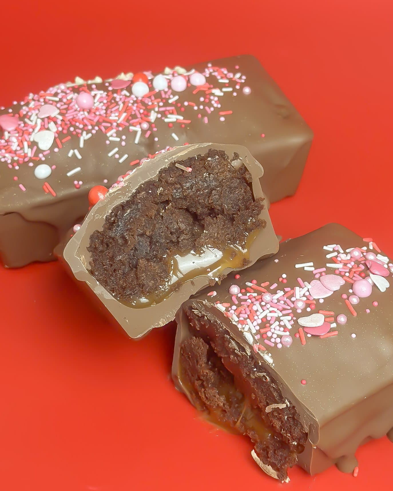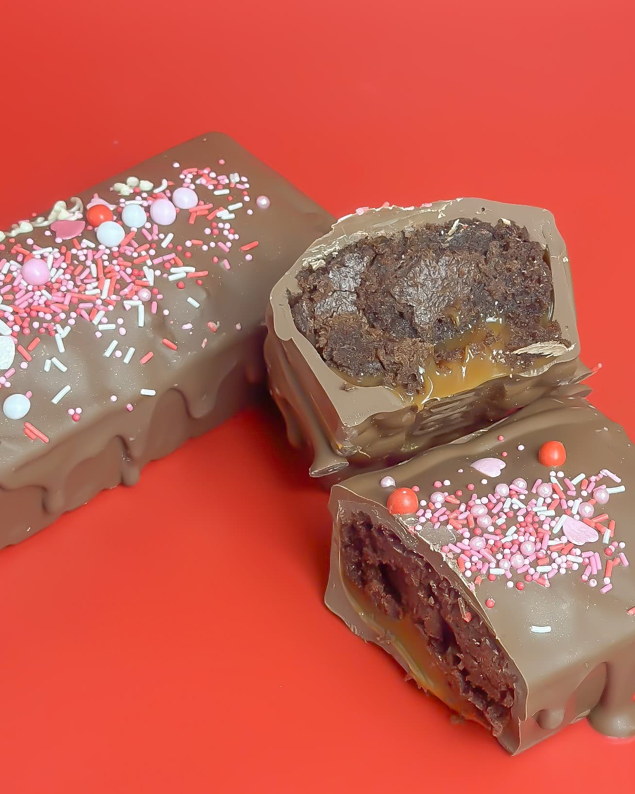Fall in love at first bite with our Valentine’s Brownie Caramel Chocolate Bar, a seriously indulgent treat made with rich brownie chunks and smooth caramel for the ultimate romantic indulgence.