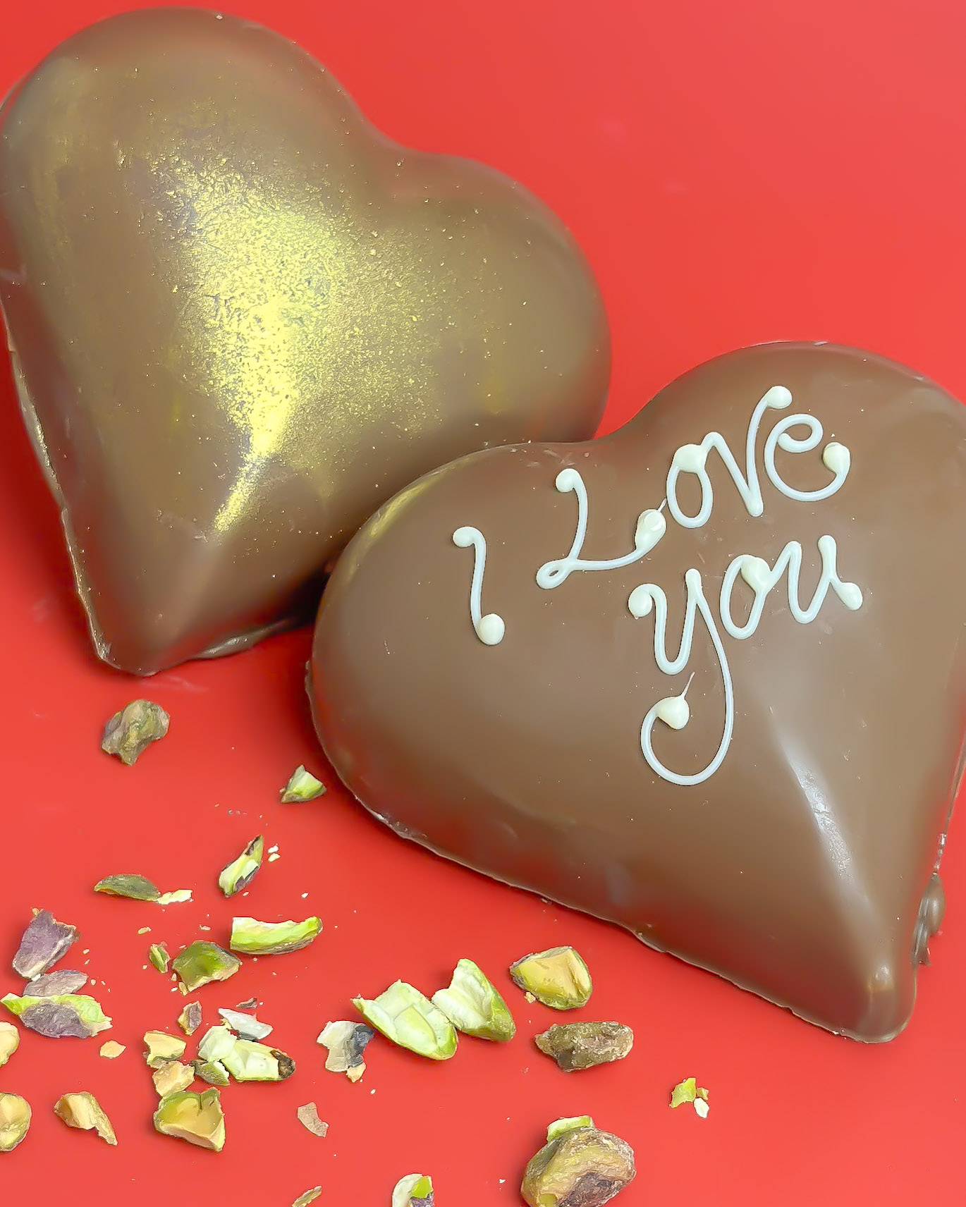 Variation 1 – 2 x Pistachio Hearts, message: I Love You