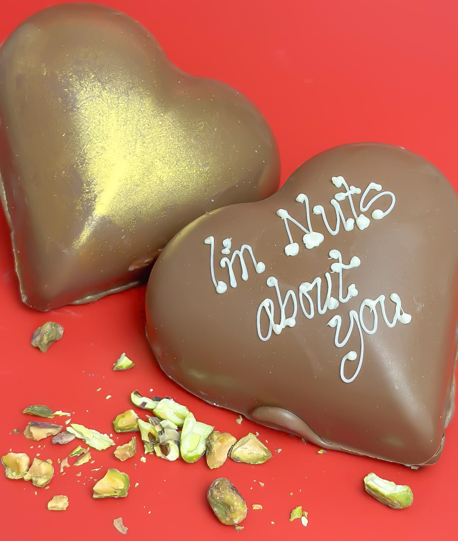 Variation 2 – 2 x Pistachio Hearts, message: I’m Nuts About You